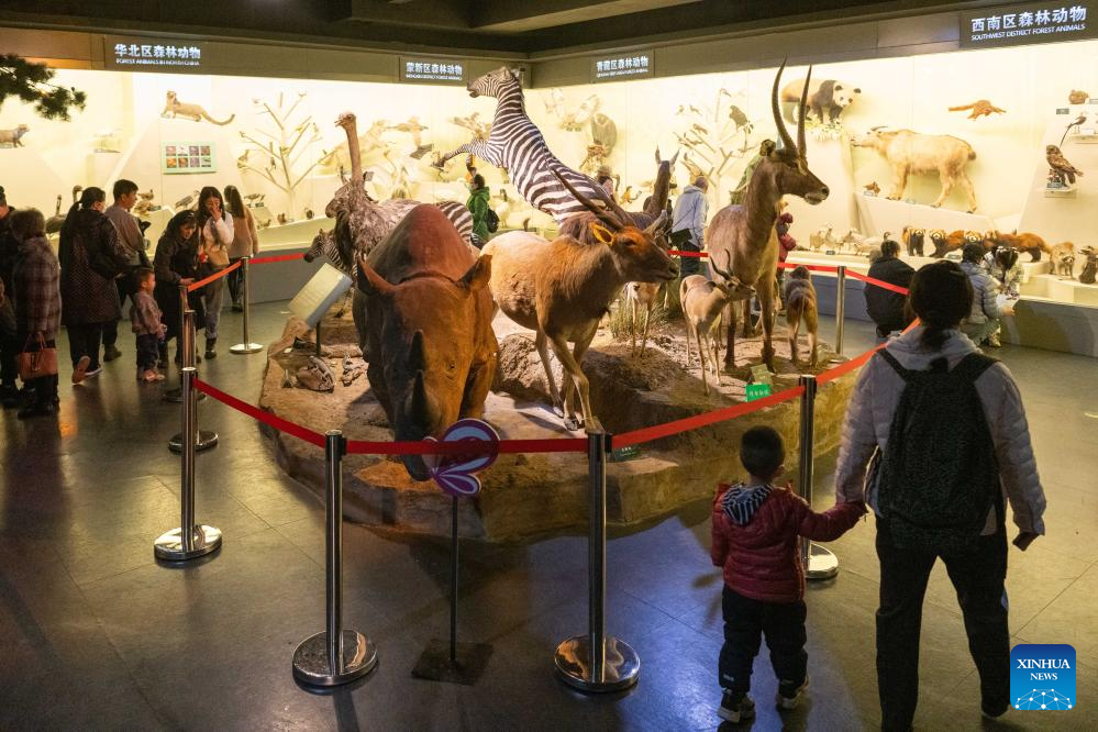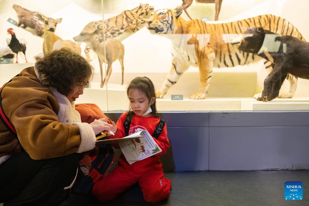 A kid learns about animals at the China (Harbin) Forest Museum in Harbin, northeast China's Heilongjiang Province, March 21, 2024. The World Forest Day falls on March 21. (Xinhua/Xie Jianfei)