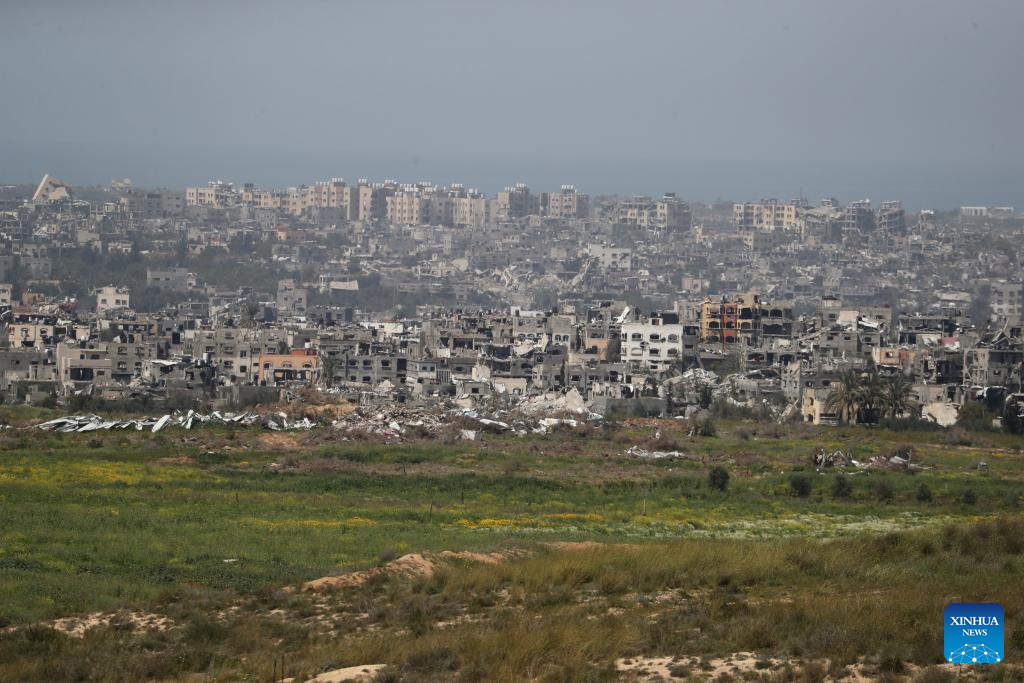 Photo taken on March 21, 2024 shows a view of destroyed buildings in the Gaza Strip amid the ongoing Israel-Hamas conflict, seen from near Nir Am, a kibbutz in southern Israel. the Hamas-run Ministry of Health in Gaza said Thursday in a statement that the Israeli army killed 65 Palestinians and wounded 92 others during the past 24 hours, bringing the total death toll to 31,988 and injuries to 74,188 since the Israel-Hamas conflict broke out on Oct. 7, 2023. Israel has been launching a large-scale offensive against Hamas in the Gaza Strip to retaliate against a Hamas rampage through the southern Israeli border on Oct. 7, 2023, during which about 1,200 people were killed and more than 200 were taken hostage. (Photo by Jamal Awad/Xinhua)