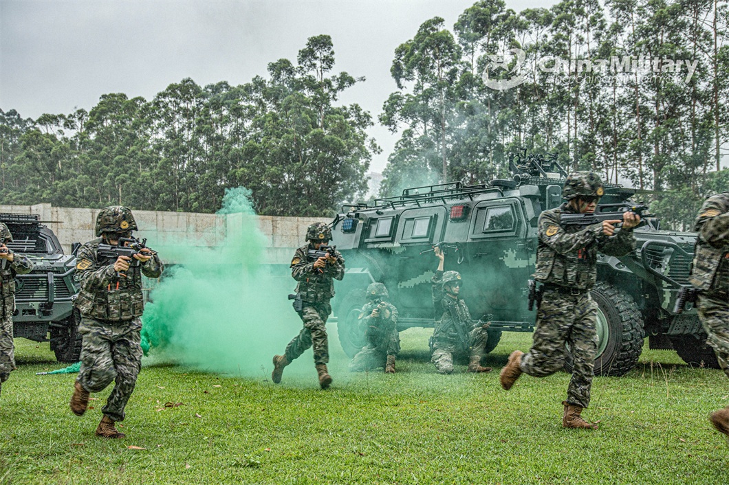 Commandos assigned to a special operations squadron of a mobile detachment under the Chinese People's Armed Police (PAP) Force Guangxi Corps rush to the designated area during a training exercise in early March, 2024. (eng.chinamil.com.cn/Photo by Liu Ming)