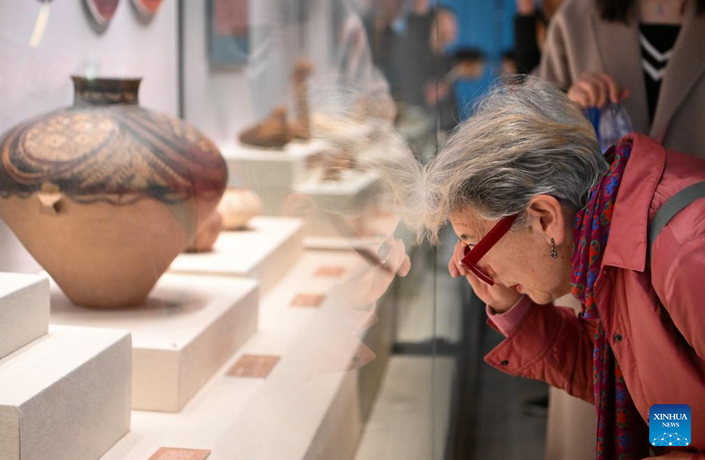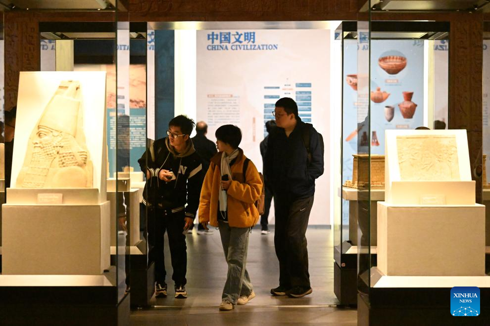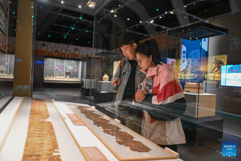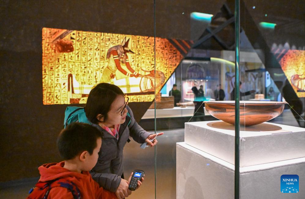 People visit an exhibition on "river civilizations" at the National Maritime Museum of China in north China's Tianjin Municipality, March 22, 2024. An exhibition on "river civilizations" was launched at the National Maritime Museum of China in north China's Tianjin Municipality on Friday. The exhibition, themed on ancient civilizations born in the world's major river valleys, will last until July 28. (Xinhua/Sun Fanyue)