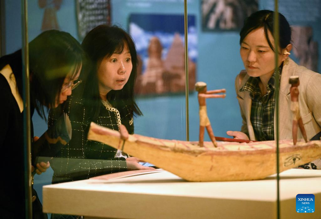 People visit an exhibition on "river civilizations" at the National Maritime Museum of China in north China's Tianjin Municipality, March 22, 2024. An exhibition on "river civilizations" was launched at the National Maritime Museum of China in north China's Tianjin Municipality on Friday. The exhibition, themed on ancient civilizations born in the world's major river valleys, will last until July 28. (Xinhua/Zhao Zishuo)