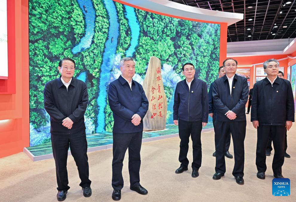 Li Xi, a member of the Standing Committee of the Political Bureau of the Communist Party of China (CPC) Central Committee and secretary of the CPC Central Commission for Discipline Inspection, visits an exhibition on the "Double-Eight" strategy in east China's Zhejiang Province, March 19, 2024. Li Xi was on a fact-finding mission to east China's Zhejiang Province between March 18 and 21. (Xinhua/Yue Yuewei)