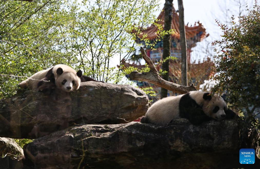 The panda twin cubs Huan Lili and Yuan Dudu are seen at the Beauval Zoo in Saint-Aignan, France, March 22, 2024. (Xinhua/Gao Jing)