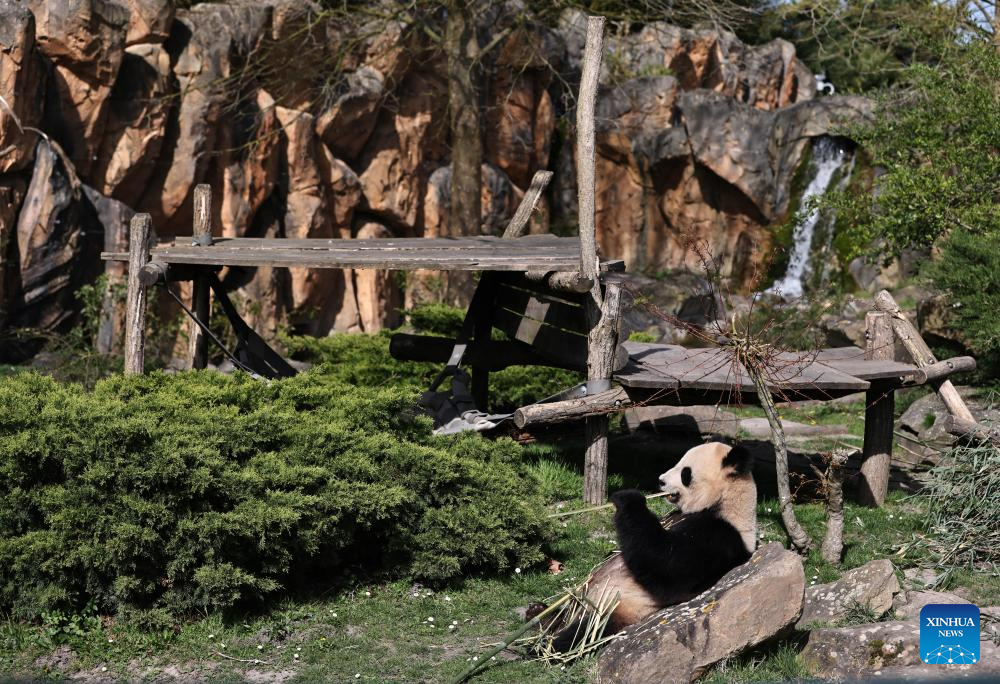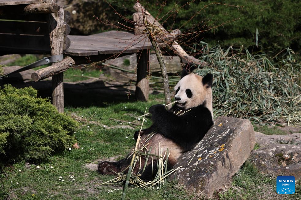 Giant panda Huan Huan is seen at the Beauval Zoo in Saint-Aignan, France, March 22, 2024. (Xinhua/Gao Jing)