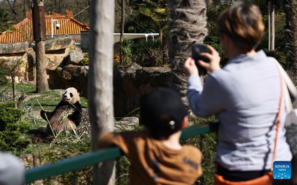 Visitors watch giant panda Huan Huan at the Beauval Zoo in Saint-Aignan, France, March 22, 2024. (Xinhua/Gao Jing)