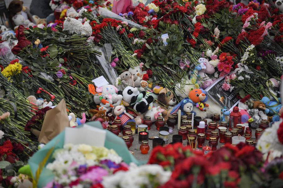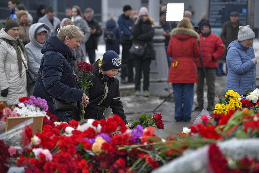 MOSCOW, March 24 (Xinhua) -- Near the Crocus City Hall in suburban Moscow, a somber sea of Russian citizens of all ages converged to pay their respects to the victims of Friday's terrorist attack here that claimed at least 137 lives.