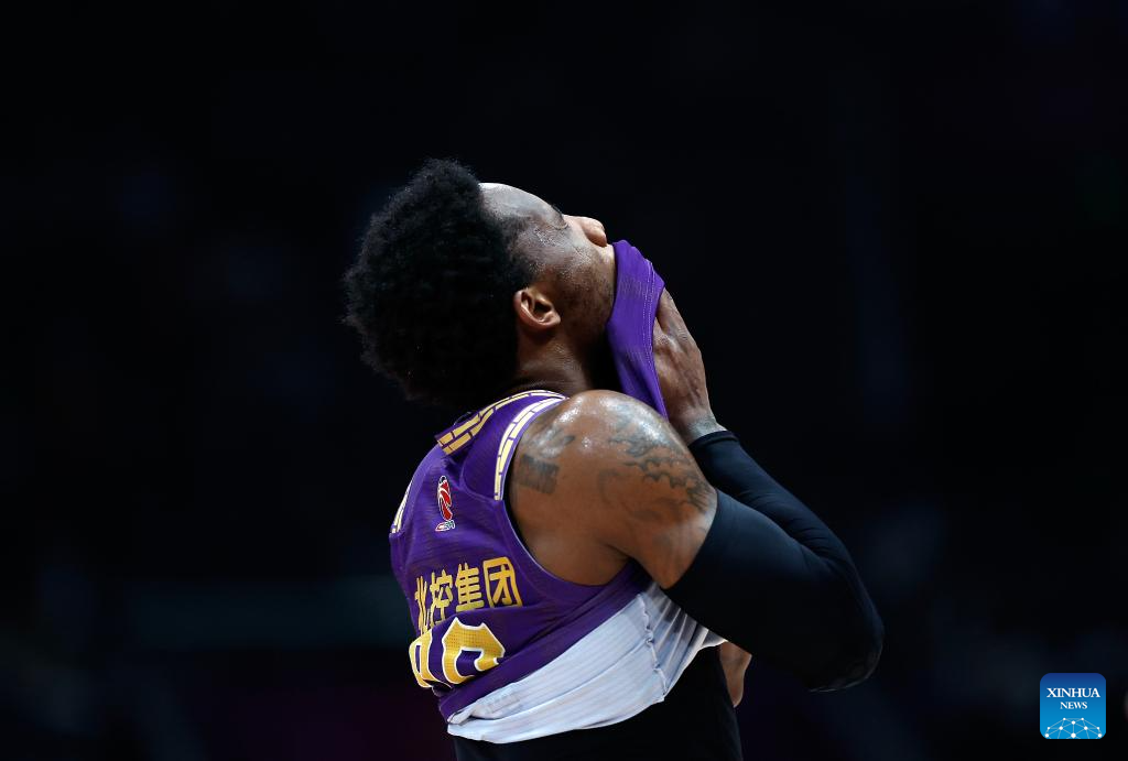 Kay Felder of Beijing Royal Fighters reacts during the 47th round match between Beijing Royal Fighters and Guangdong Southern Tigers at the 2023-2024 Chinese Basketball Association (CBA) league in Beijing, China, March 24, 2024. (Xinhua/Wang Lili)