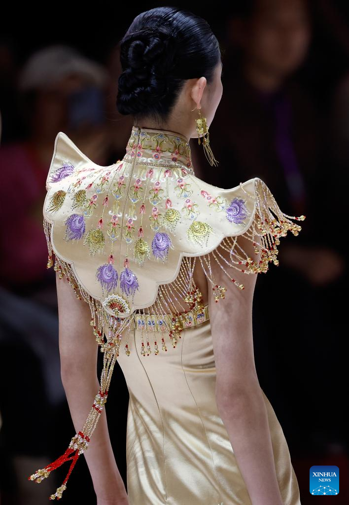 A model presents a creation of Loolayy during the China Fashion Week A/W 2024 in Beijing, capital of China, March 23, 2024. The China Fashion Week A/W 2024 kicked off on Saturday here, and will last until March 31. (Xinhua/Wang Lili)