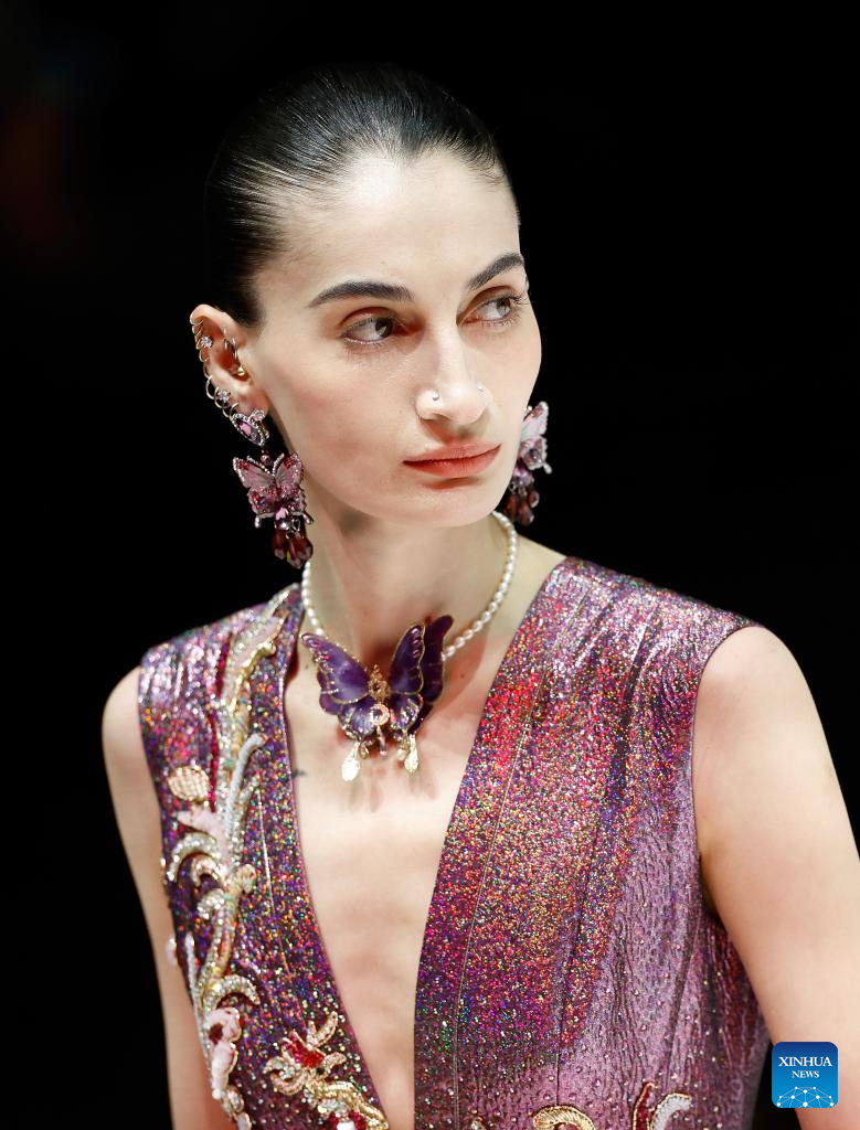 A model presents a creation of Loolayy during the China Fashion Week A/W 2024 in Beijing, capital of China, March 23, 2024. The China Fashion Week A/W 2024 kicked off on Saturday here, and will last until March 31. (Xinhua/Cai Yang)