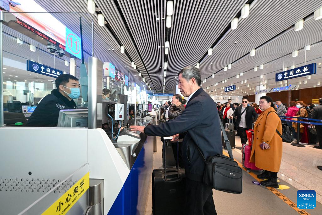 A police officer handles entry procedures of a passenger at Tianjin International Cruise Home Port in north China's Tianjin Municipality, March 23, 2024. As the largest cruise home port in north China, Tianjin International Cruise Home Port has handled more than 200,000 inbound and outbound passengers since its full resumption of international cruise ship transport on Sept. 27, 2023.