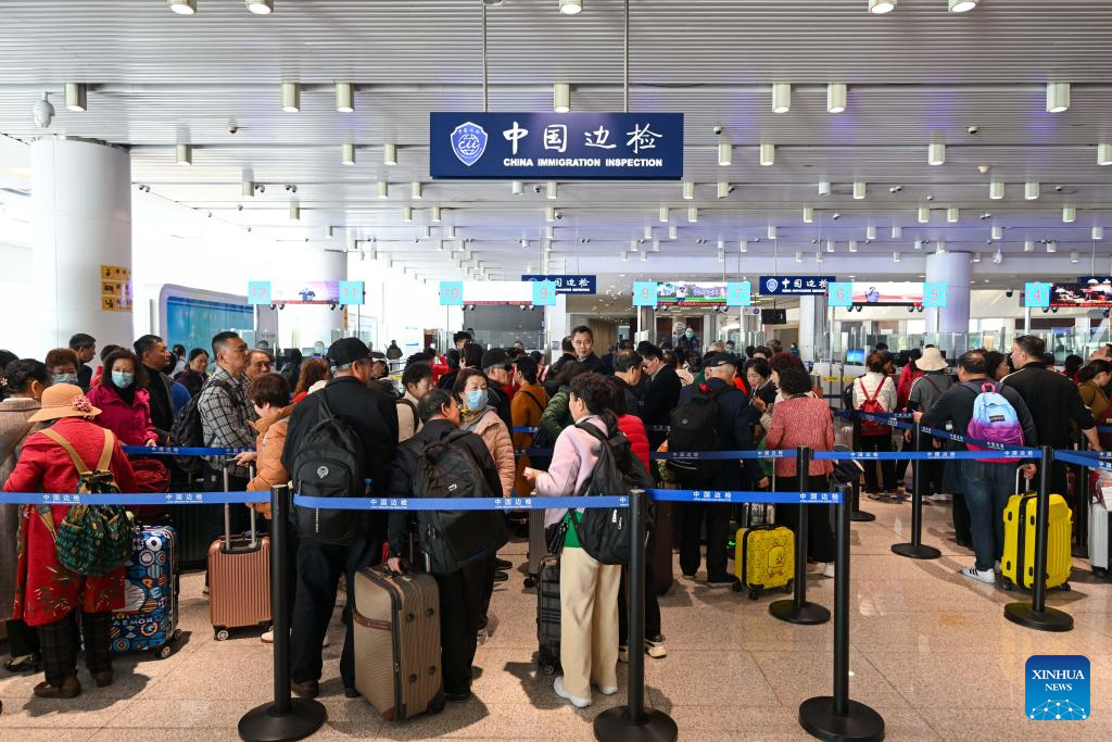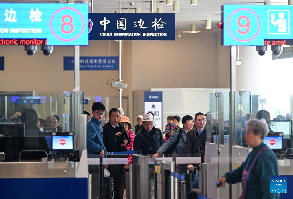 Passengers go through entry procedures at Tianjin International Cruise Home Port in north China's Tianjin Municipality, March 23, 2024. As the largest cruise home port in north China, Tianjin International Cruise Home Port has handled more than 200,000 inbound and outbound passengers since its full resumption of international cruise ship transport on Sept. 27, 2023.
