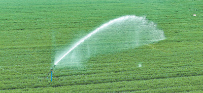 When he aimed the remote control at the well house, located several tens of meters away, the sprinkler irrigation system in the wheat field instantly turned on.