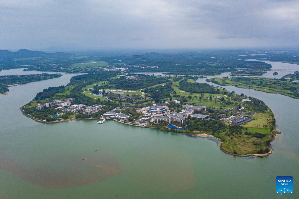 An aerial drone photo taken on March 13, 2024 shows a view of Dongyu Island in Boao, south China's Hainan Province. The Boao Forum for Asia (BFA) Annual Conference 2024 will be held from March 26 to 29 in Boao, focusing on how the international community can work together to deal with common challenges and shoulder their responsibilities. (Xinhua/Pu Xiaoxu)