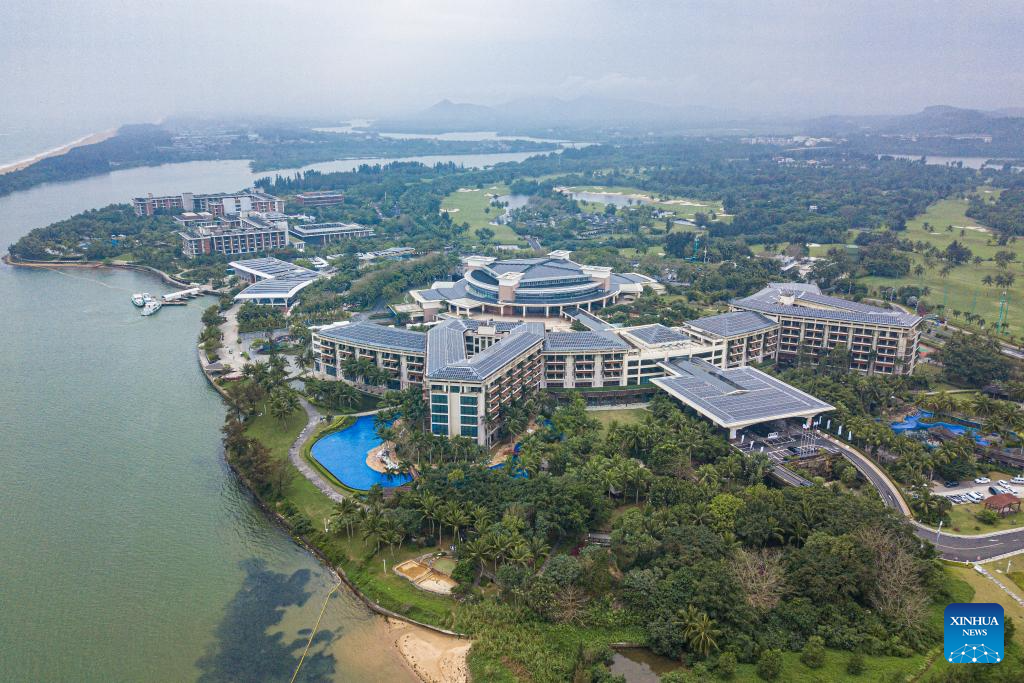 An aerial drone photo taken on March 9, 2024 shows a view of the Boao Forum for Asia (BFA) Convention Center and a BFA hotel in Boao, south China's Hainan Province. The Boao Forum for Asia (BFA) Annual Conference 2024 will be held from March 26 to 29 in Boao, focusing on how the international community can work together to deal with common challenges and shoulder their responsibilities. (Xinhua/Pu Xiaoxu)