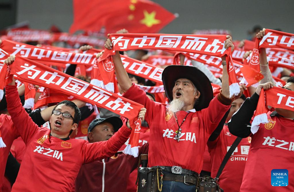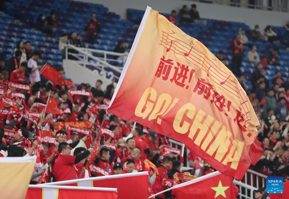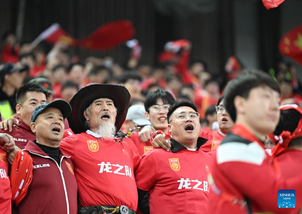 Fans of China are seen before the group C match of 2026 FIFA World Cup Asian qualifiers between China and Singapore in north China's Tianjin Municipality on March 26, 2024. (Xinhua/Jia Haocheng)