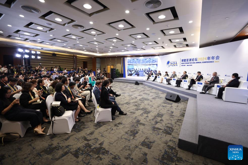 A panel discussion themed on "Accelerating Transition toward Zero-Carbon Power" is held during the Boao Forum for Asia (BFA) Annual Conference 2024 in Boao, south China's Hainan Province, March 26, 2024. (Xinhua/Zhang Liyun)