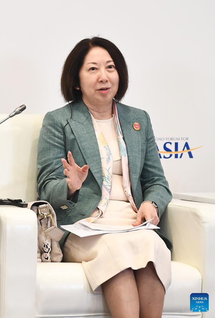 Shimizu Tokiko, Assistant Governor of the Bank of Japan, speaks at a panel discussion themed on "Investing the Future of Asia" during the Boao Forum for Asia (BFA) Annual Conference 2024 in Boao, south China's Hainan Province, March 26, 2024. (Xinhua/Yang Guanyu)