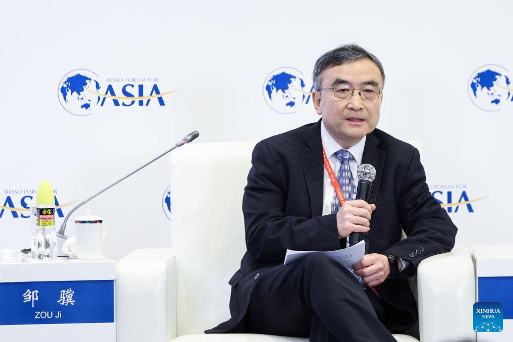 Zou Ji, CEO &president of Energy Foundation China, speaks at a panel discussion themed on "Accelerating Transition toward Zero-Carbon Power" during the Boao Forum for Asia (BFA) Annual Conference 2024 in Boao, south China's Hainan Province, March 26, 2024. (Xinhua/Zhang Liyun)