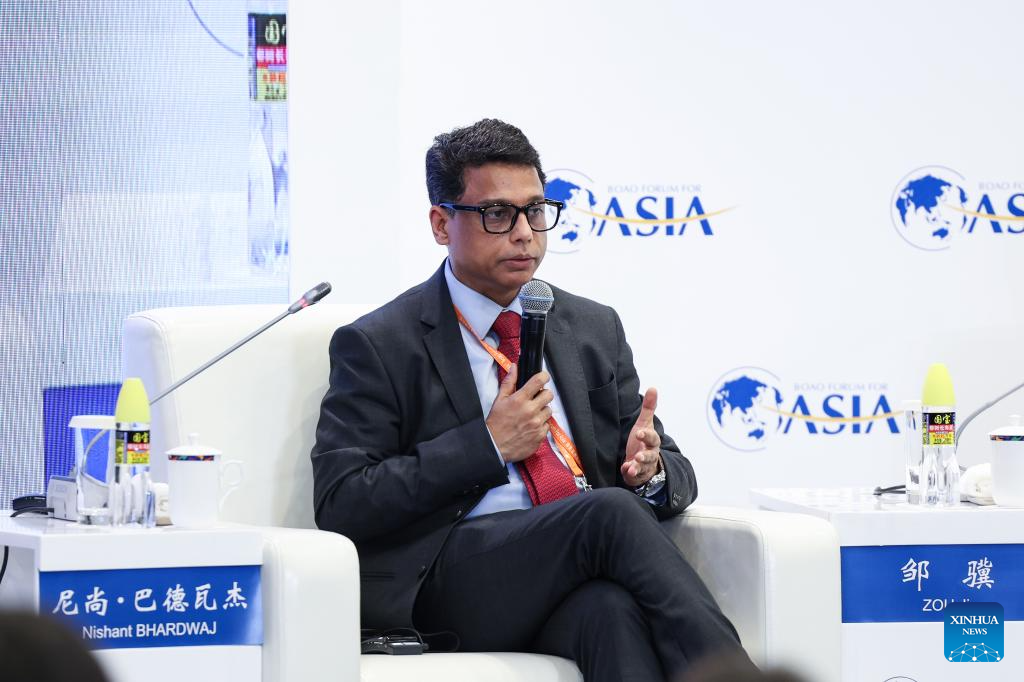 Nishant Bhardwaj, Global Sector Lead-Renewable Energy/Deputy Director of the Global Green Growth Institute (GGGI), speaks at a panel discussion themed on "Accelerating Transition toward Zero-Carbon Power" during the Boao Forum for Asia (BFA) Annual Conference 2024 in Boao, south China's Hainan Province, March 26, 2024. (Xinhua/Zhang Liyun)