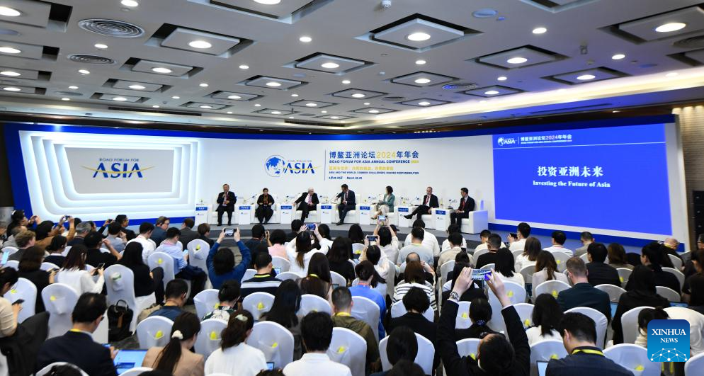 A panel discussion themed on "Investing the Future of Asia" is held during the Boao Forum for Asia (BFA) Annual Conference 2024 in Boao, south China's Hainan Province, March 26, 2024. (Xinhua/Yang Guanyu)