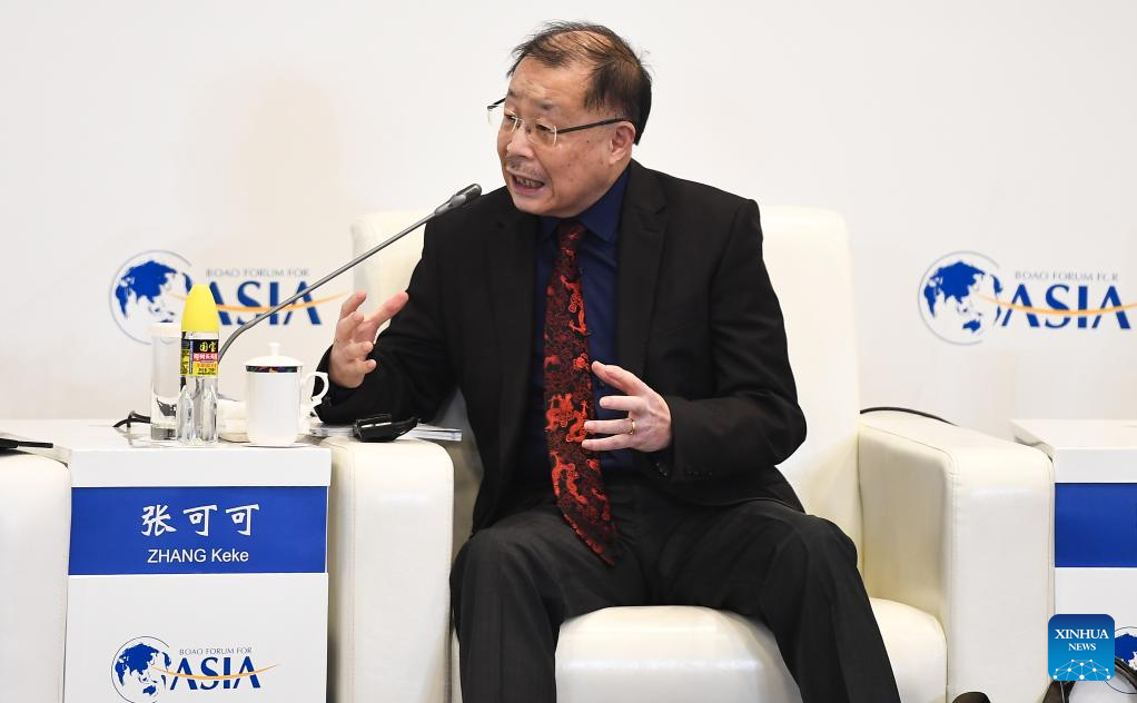 Zhang Keke, Associate Vice President of Macau University of Science and Technology and Director of Macau Institute of Space Technology and Application, speaks at a panel discussion themed on "How Far is the Breakthrough Moment of Technological Revolution?" during the Boao Forum for Asia (BFA) Annual Conference 2024 in Boao, south China's Hainan Province, March 26, 2024. (Xinhua/Yang Guanyu)