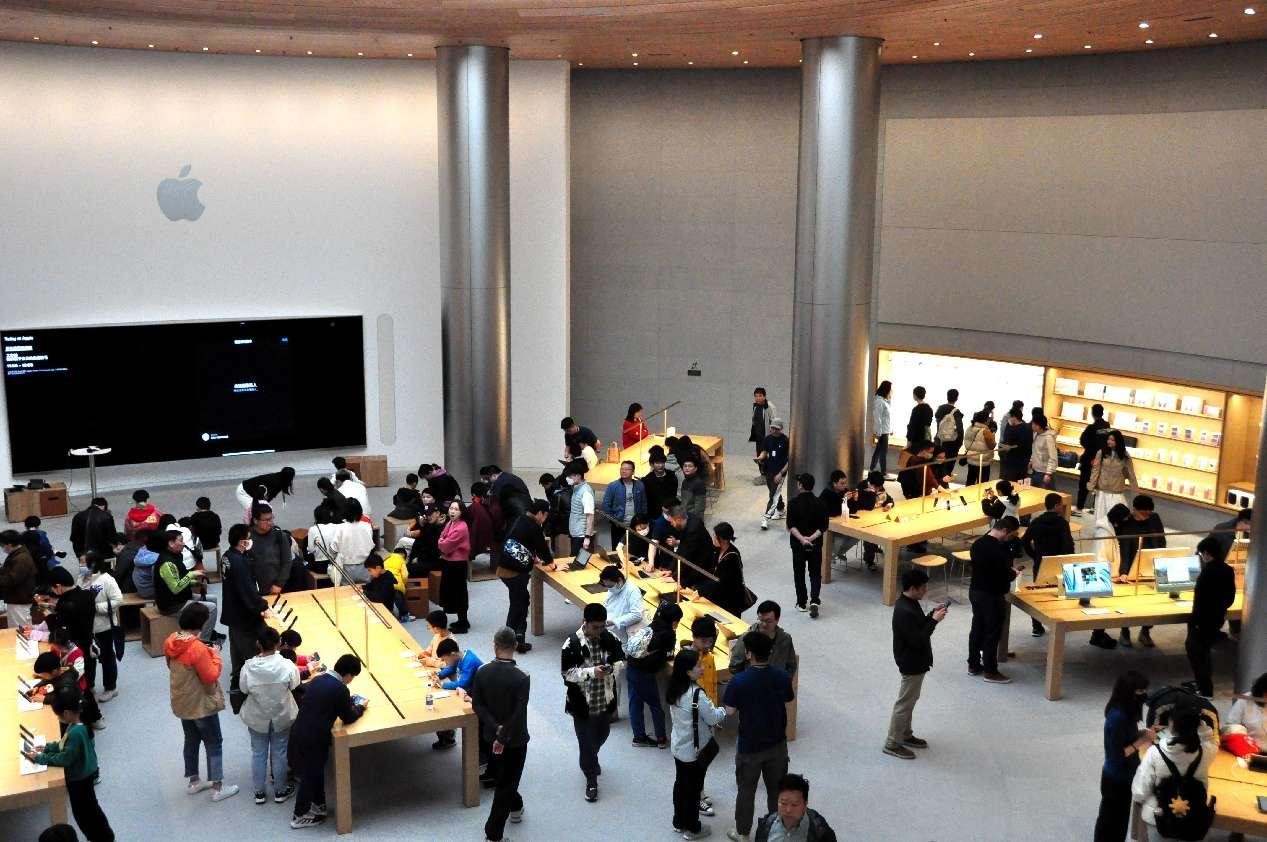 Photo taken on March 24, 2024 shows a recently opened Apple store in Jing'ansi Square in a central business district of Shanghai, which is the largest in Asia. (People's Daily Online/Yan Daming)