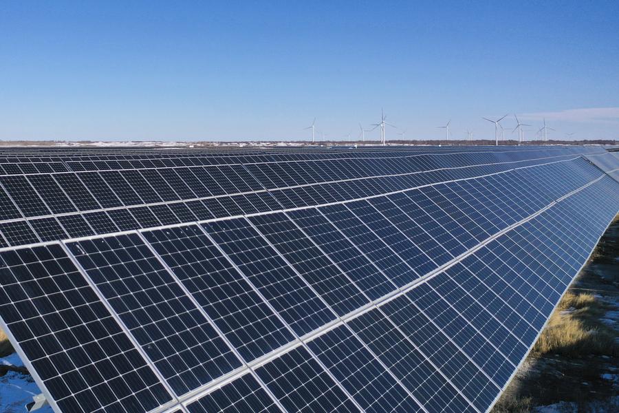 This photo taken on Dec. 3, 2021 shows a photovoltaic power station in Wulanhua Town, Baicheng City of northeast China's Jilin Province. (Photo by Zhang Yubo/Xinhua)