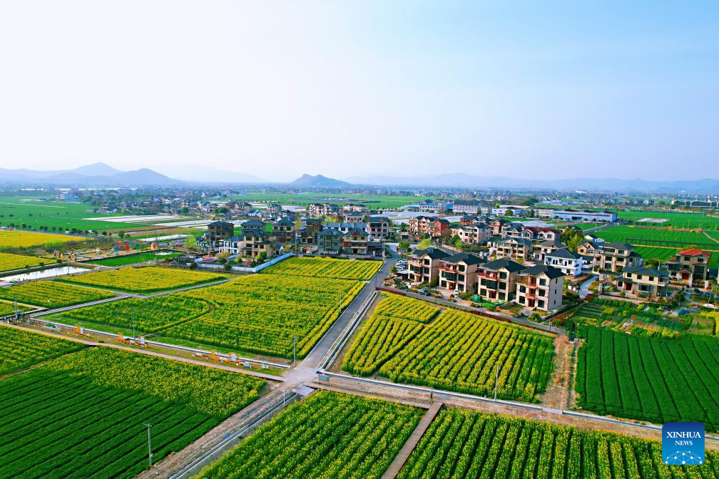 HANGZHOU, March 27 (Xinhua) -- On a warm spring day, Liu Song strolled past the lush green wheat fields and through the blooming rapeseed flower fields that span 100 mu (about 7 hectares) before arriving at his office.