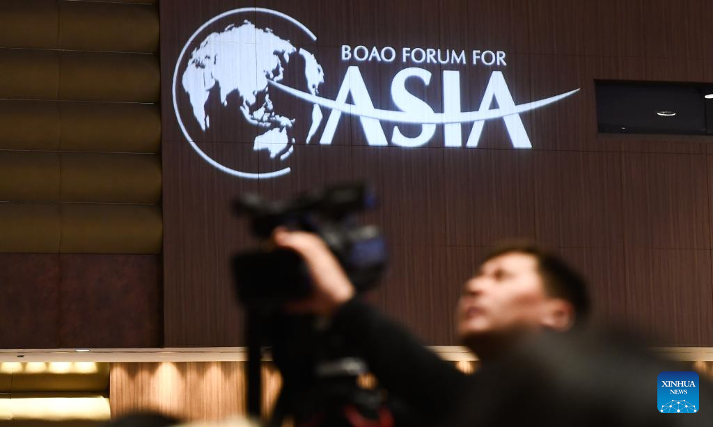 A logo is seen at the opening ceremony of the Boao Forum for Asia Annual Conference 2024 in Boao, south China's Hainan Province, March 28, 2024. (Xinhua/Yang Guanyu)