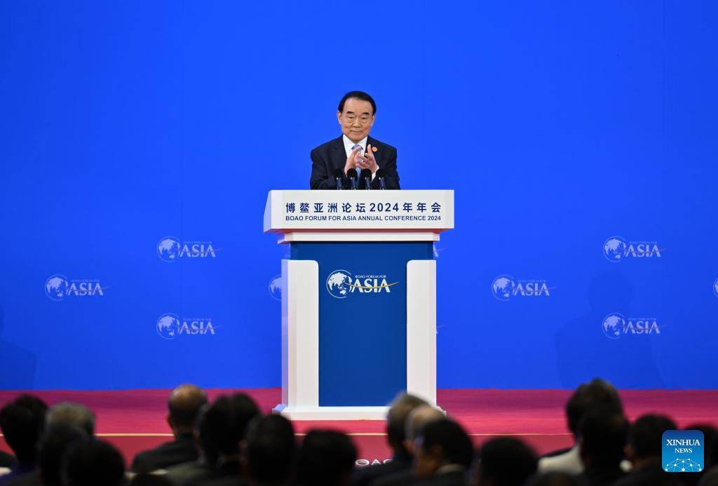Li Baodong, secretary general of the Boao Forum for Asia (BFA), presides over the opening ceremony of the Boao Forum for Asia Annual Conference 2024 in Boao, south China's Hainan Province, March 28, 2024. (Xinhua/Guo Cheng)
