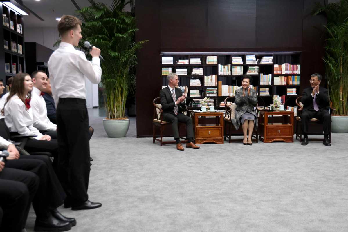 Having learned about the students' studies and experiences over the past years, Peng praised them for speaking more fluent Chinese and expressed her hope that the students will get a deeper understanding of China after this trip.