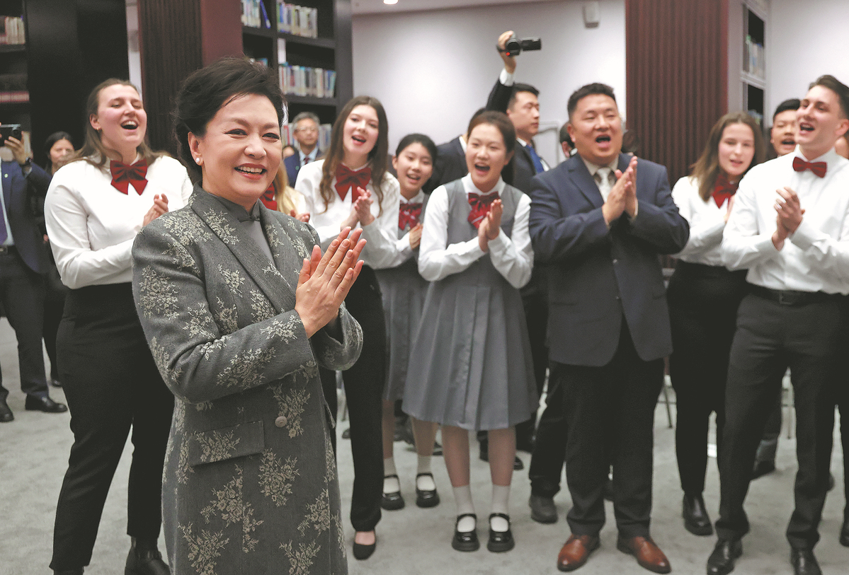 On Thursday, Peng warmly welcomed the chorus to China and congratulated it for persisting in using song to convey friendship and build bridges of cultural exchanges between the two countries.