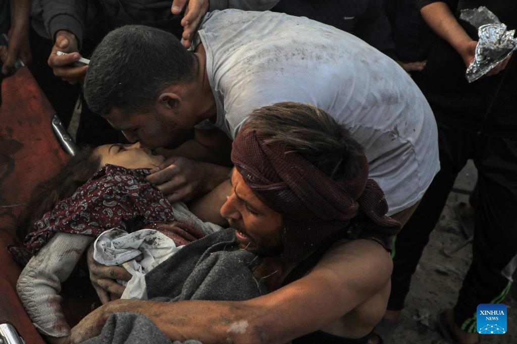 A survivor is rescued from rubble after Israeli airstrikes in the southern Gaza Strip city of Rafah, on March 27, 2024. The Palestinian death toll in the Gaza Strip has risen to 32,552, the Hamas-run Health Ministry said in a press statement on Thursday. (Photo by Rizek Abdeljawad/Xinhua)