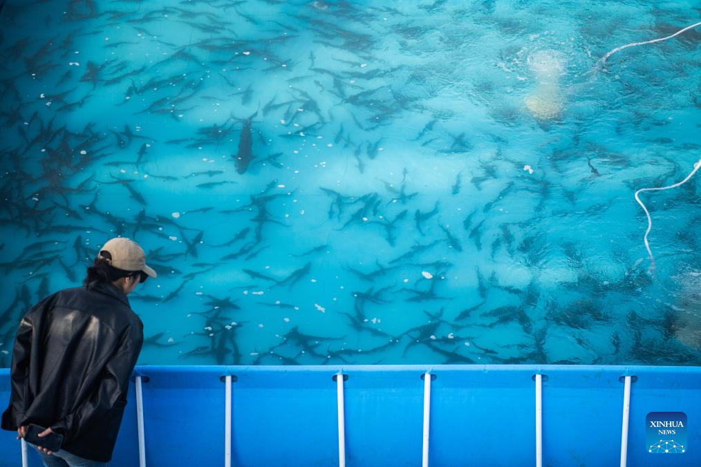Chinese sturgeons to be released to the Yangtze River are seen in Yichang, central China's Hubei Province, March 28, 2024. More than 200,000 second filial generation Chinese sturgeons were released into the Yangtze River on Thursday to increase wild stocks of the rare species. (Xinhua/Wu Zhizun)