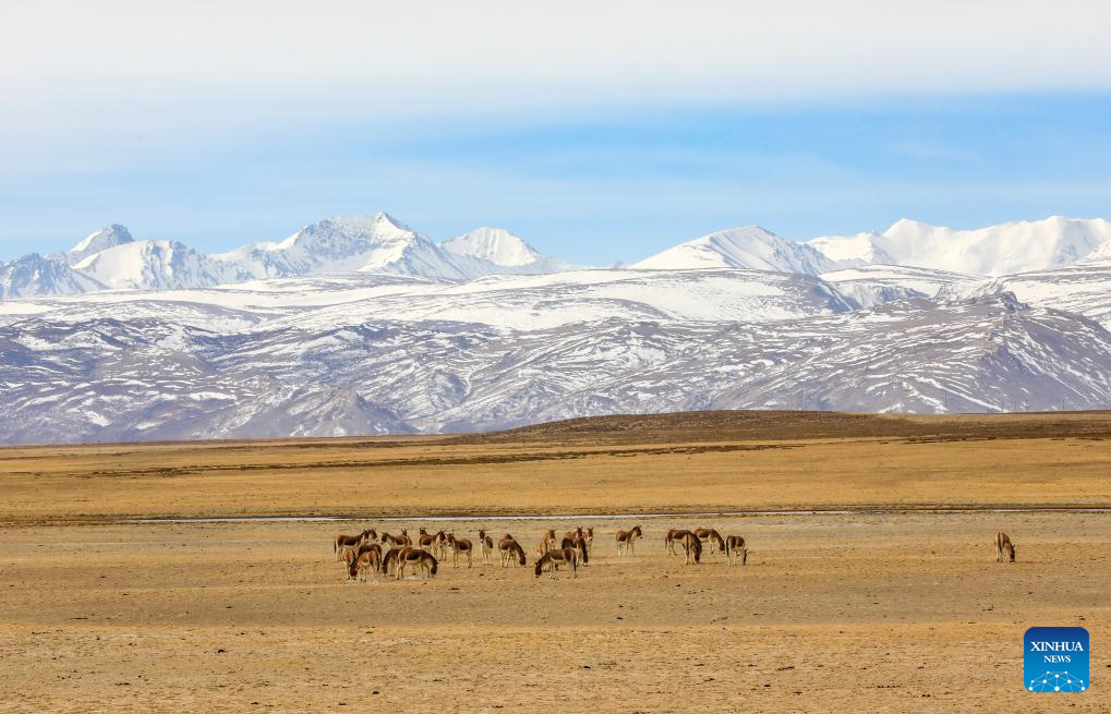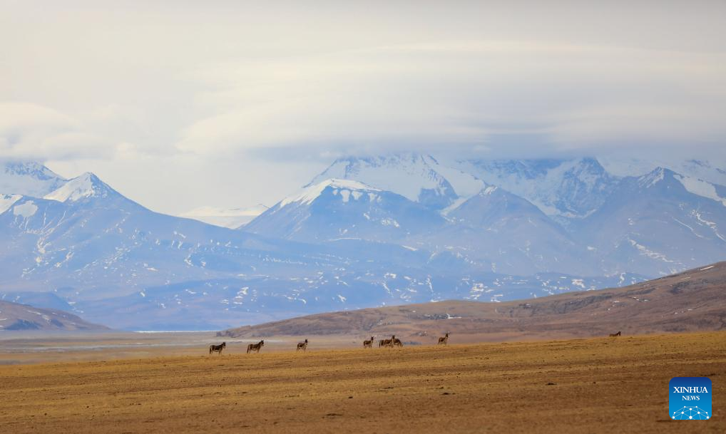 Tibetan wild donkeys are seen in Burang County, southwest China's Xizang Autonomous Region, March 29, 2024. (Photo by Liu Xiaodong/Xinhua)