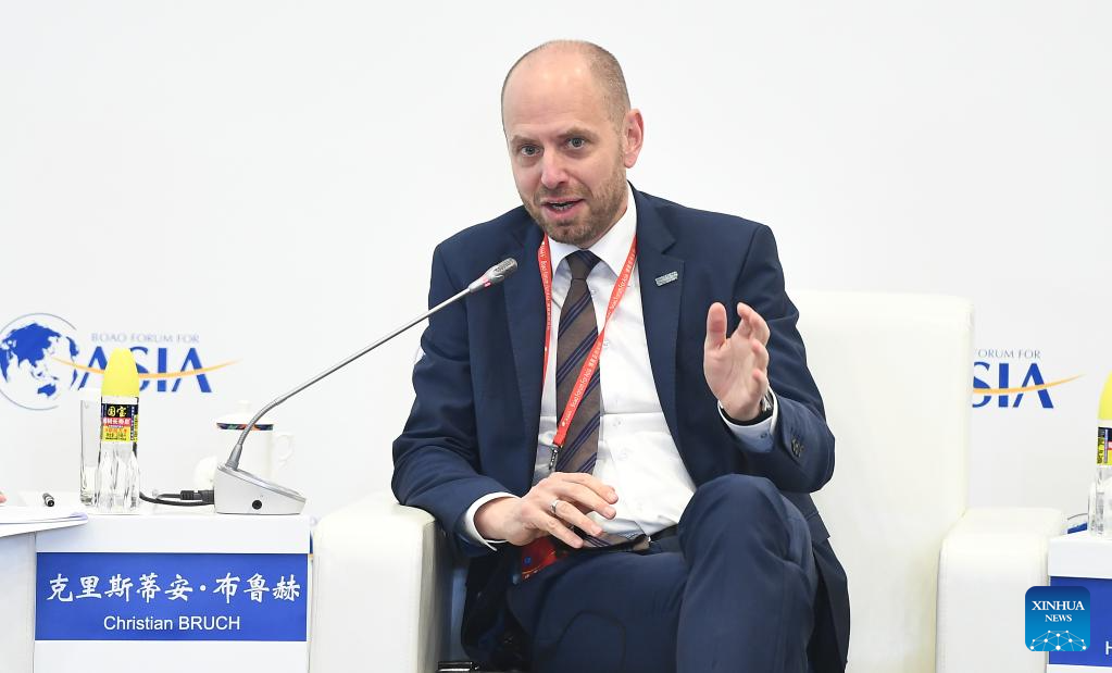 Christian Bruch, president and CEO of Siemens Energy, speaks at a panel discussion themed on "Low-Carbon Energy Transformation" during the Boao Forum for Asia (BFA) Annual Conference 2024 in Boao, south China's Hainan Province, March 29, 2024. (Xinhua/Yang Guanyu)