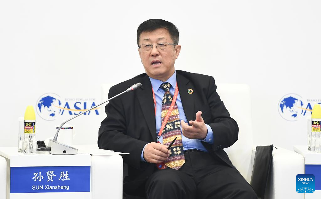 Sun Xiansheng, chairman of council of the International Society for Energy Transition Studies (ISETS) and the 4th secretary general of International Energy Forum, speaks at a panel discussion themed on "Low-Carbon Energy Transformation" during the Boao Forum for Asia (BFA) Annual Conference 2024 in Boao, south China's Hainan Province, March 29, 2024. (Xinhua/Yang Guanyu)