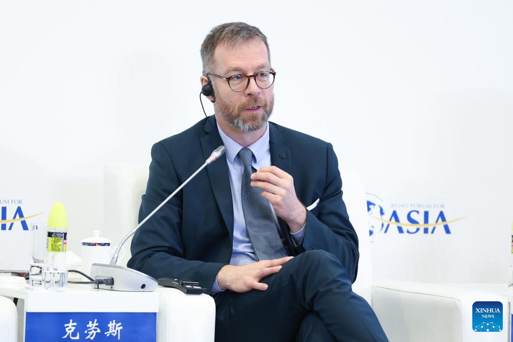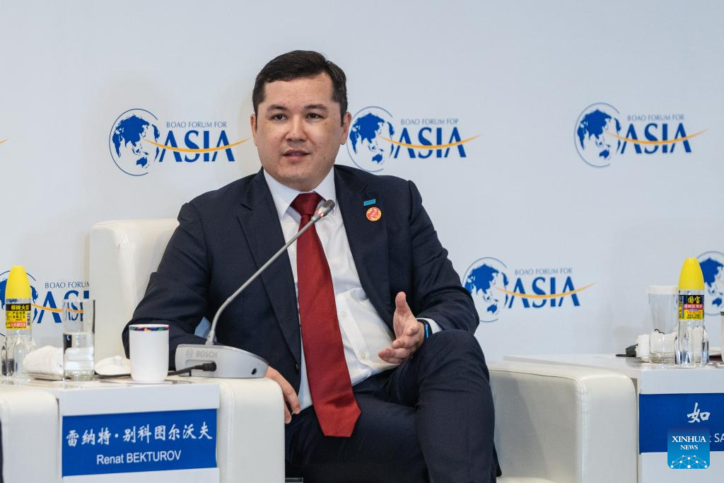 Renat Bekturov, governor of Astana International Financial Center, speaks at a panel discussion themed on "Supporting High-Quality Belt and Road Cooperation" during the Boao Forum for Asia (BFA) Annual Conference 2024 in Boao, south China's Hainan Province, March 29, 2024. (Xinhua/Cao Mengyao)
