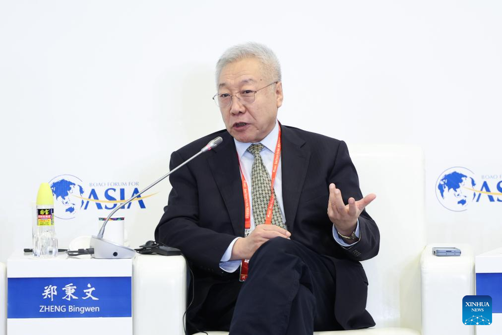 Zheng Bingwen, director of the center of International Social Security of Chinese Academy of Social Science, also a professor of University of Chinese Academy of Social Sciences, speaks at a panel discussion themed on "Envisioning an Age-Friendly Society" during the Boao Forum for Asia (BFA) Annual Conference 2024 in Boao, south China's Hainan Province, March 29, 2024. (Xinhua/Zhang Liyun)
