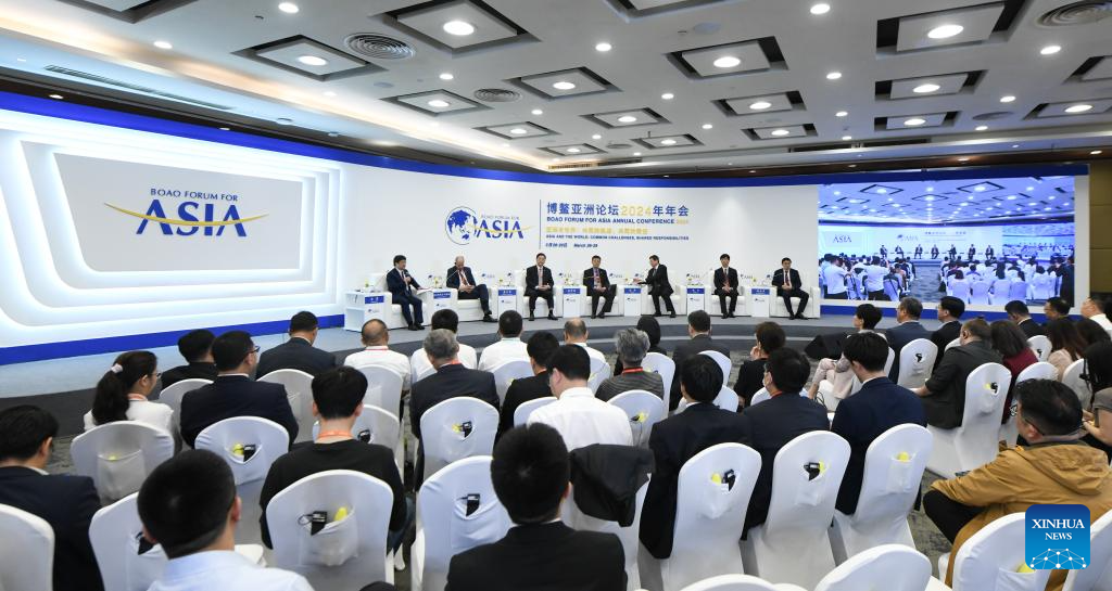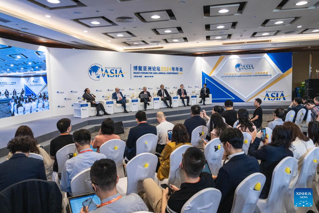 A panel discussion themed on "Supporting High-Quality Belt and Road Cooperation" is held during the Boao Forum for Asia (BFA) Annual Conference 2024 in Boao, south China's Hainan Province, March 29, 2024. (Xinhua/Cao Mengyao)