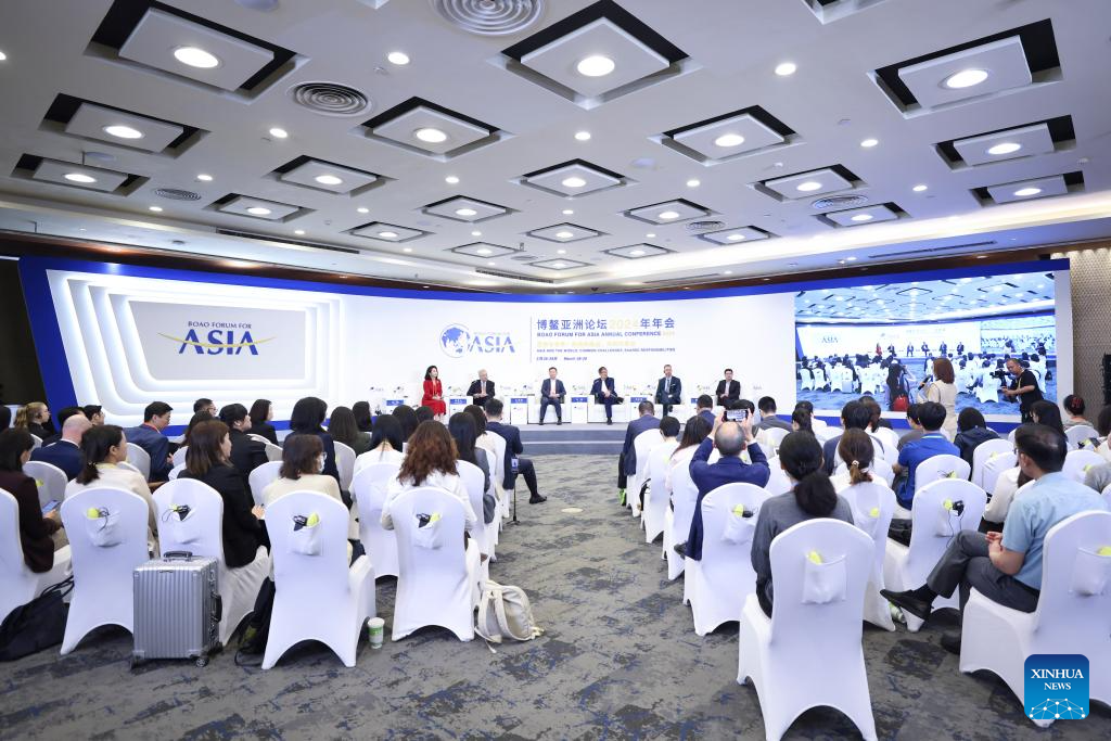 A panel discussion themed on "Low-Carbon Energy Transformation" is held during the Boao Forum for Asia (BFA) Annual Conference 2024 in Boao, south China's Hainan Province, March 29, 2024. (Xinhua/Yang Guanyu)