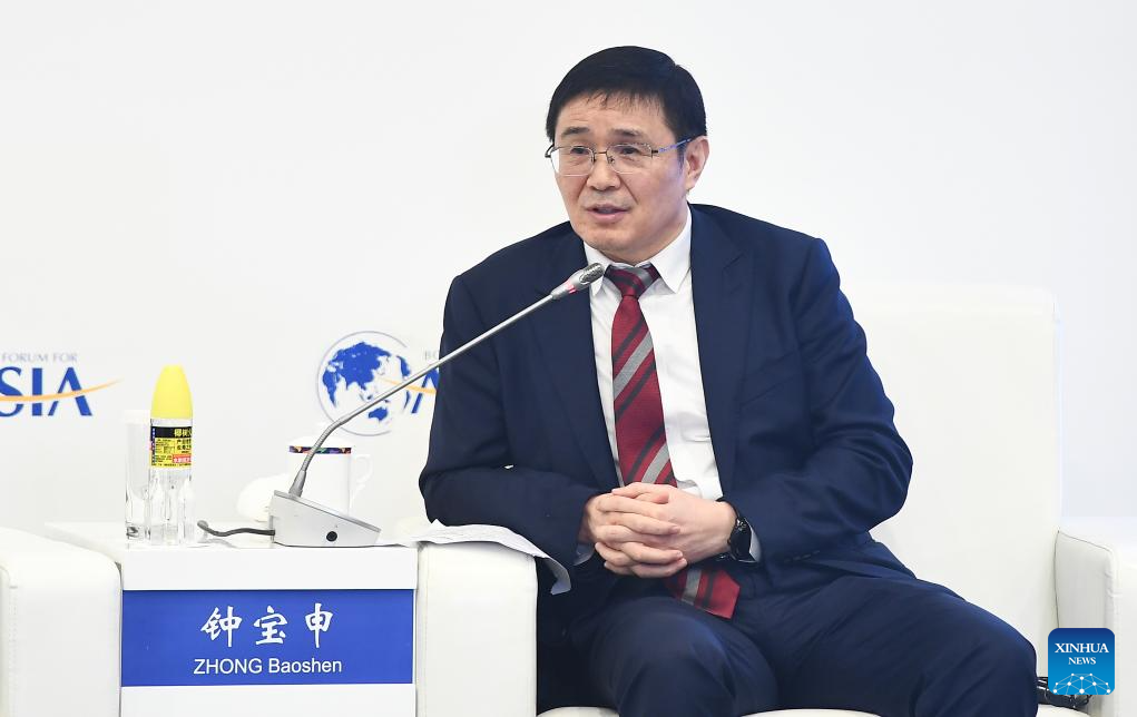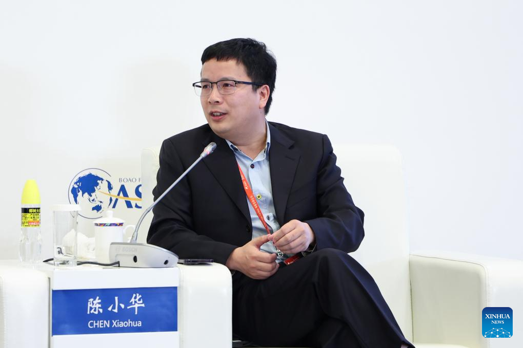 Zhong Baoshen, chairman of LONGi Green Energy Technology Co., Ltd., speaks at a panel discussion themed on "Low-Carbon Energy Transformation" during the Boao Forum for Asia (BFA) Annual Conference 2024 in Boao, south China's Hainan Province, March 29, 2024. (Xinhua/Yang Guanyu)