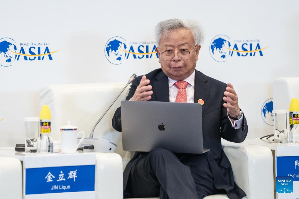 Jin Liqun, president and chairman of the Board of Directors of the Asian Infrastructure Investment Bank (AIIB), speaks at a panel discussion themed on "Supporting High-Quality Belt and Road Cooperation" during the Boao Forum for Asia (BFA) Annual Conference 2024 in Boao, south China's Hainan Province, March 29, 2024. (Xinhua/Cao Mengyao)