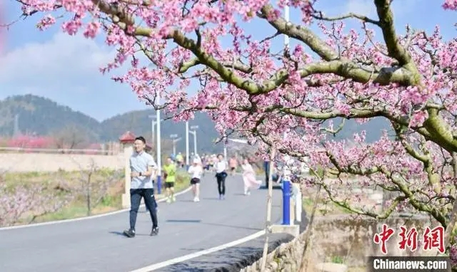 The Yongle Taohuapao Marathon kicked off in a vast peach garden in the township on March 23, attracting over 1,000 participants, including elderly and young runners.