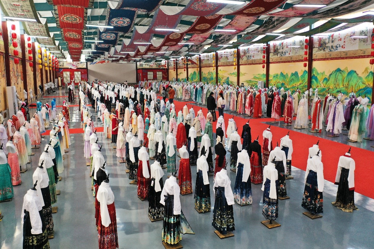 Thanks to the mamianqun's popularity on Douyin, a popular short-video platform, the county has introduced 124 offline Hanfu experience stores and 170 studios. More than 90 percent of the Hanfu designs are original, creating a complete industry chain and brand incubation system that includes design, cutting, embroidery, printing, and finished clothing.