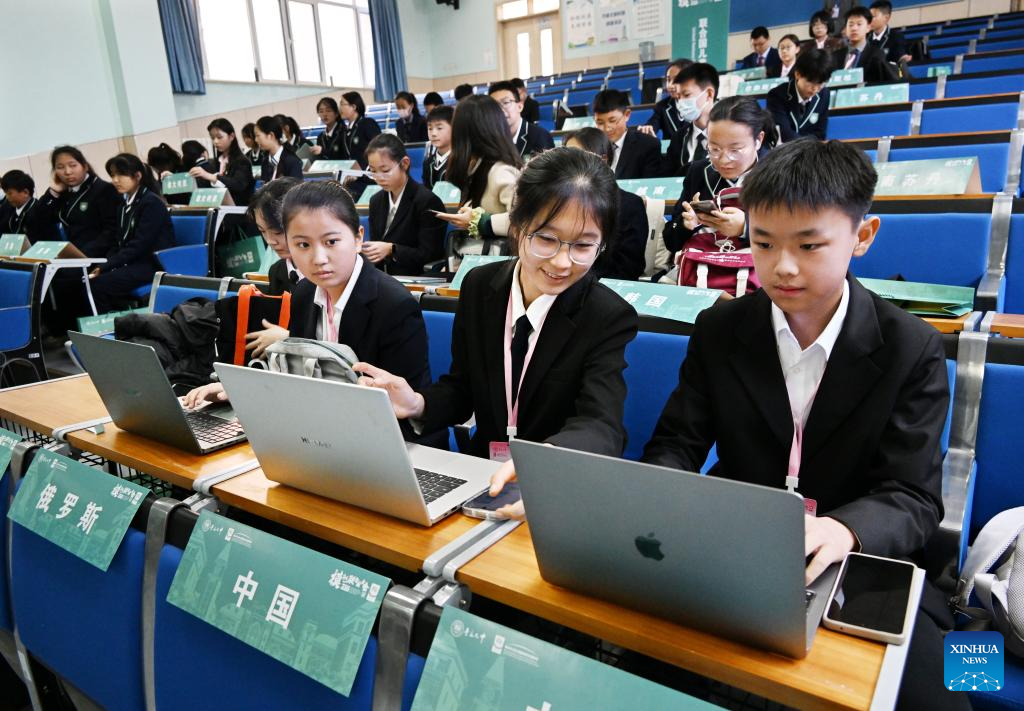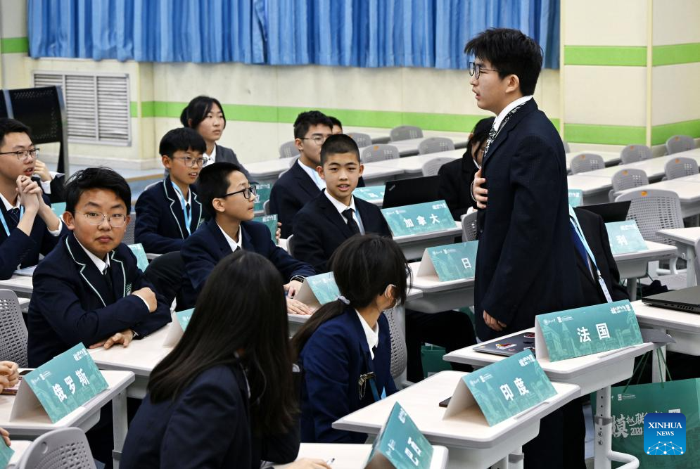 Students participate in a Model UN conference in a middle school in Qingdao, east China's Shandong Province, March 30, 2024. (Xinhua/Li Ziheng)