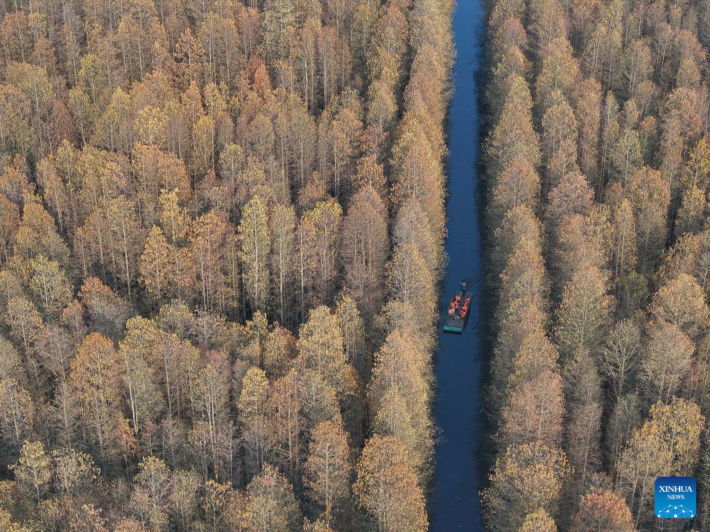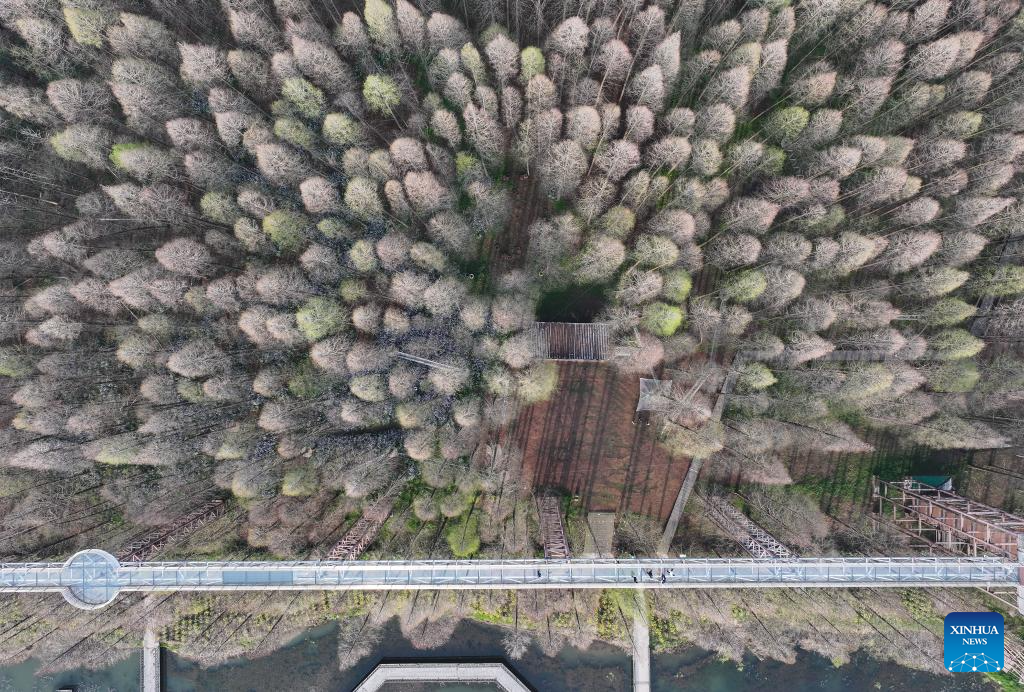 Tourists visit Jinhu water forest scenic spot in Jinhu County, east China's Jiangsu Province, March 30, 2024. (Xinhua/Ji Chunpeng)