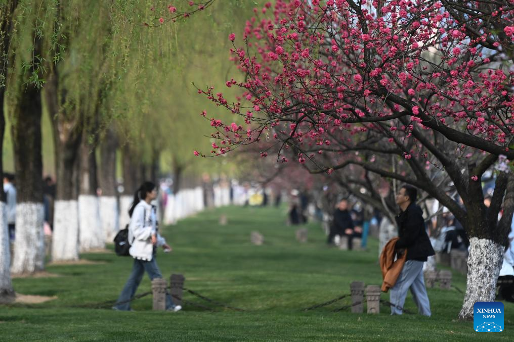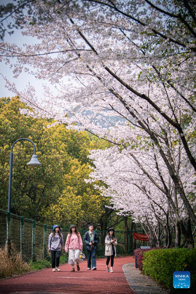 Tourists walk in Gaoting Mountain scenic area in Shangcheng District of Hangzhou, east China's Zhejiang Province, March 27, 2024. (Xinhua/Jiang Han)