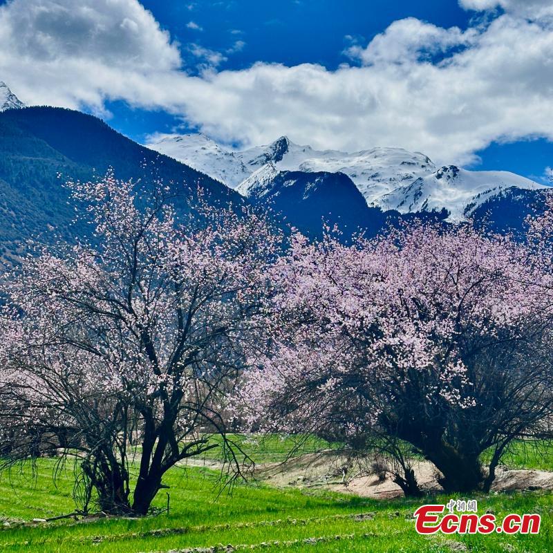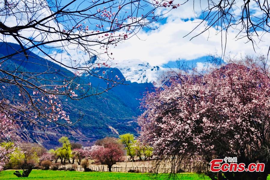 Breathtaking scenery of peach blossoms in Nyingchi, southwest China's Xizang Autonomous Region. (Photo/China News Service)