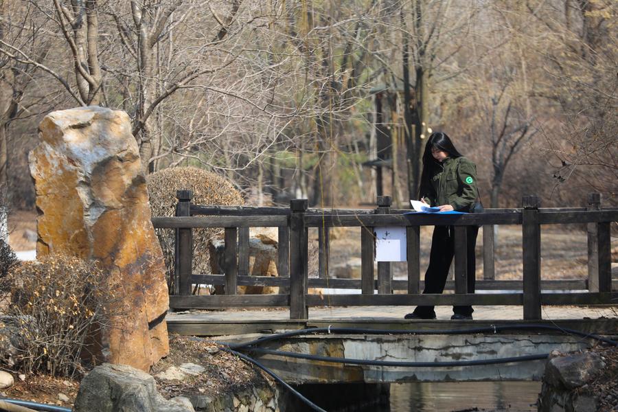 Meng Die takes records of wild birds in Shenyang, northeast China's Liaoning Province, March 23, 2024. (Xinhua/Yang Qing)